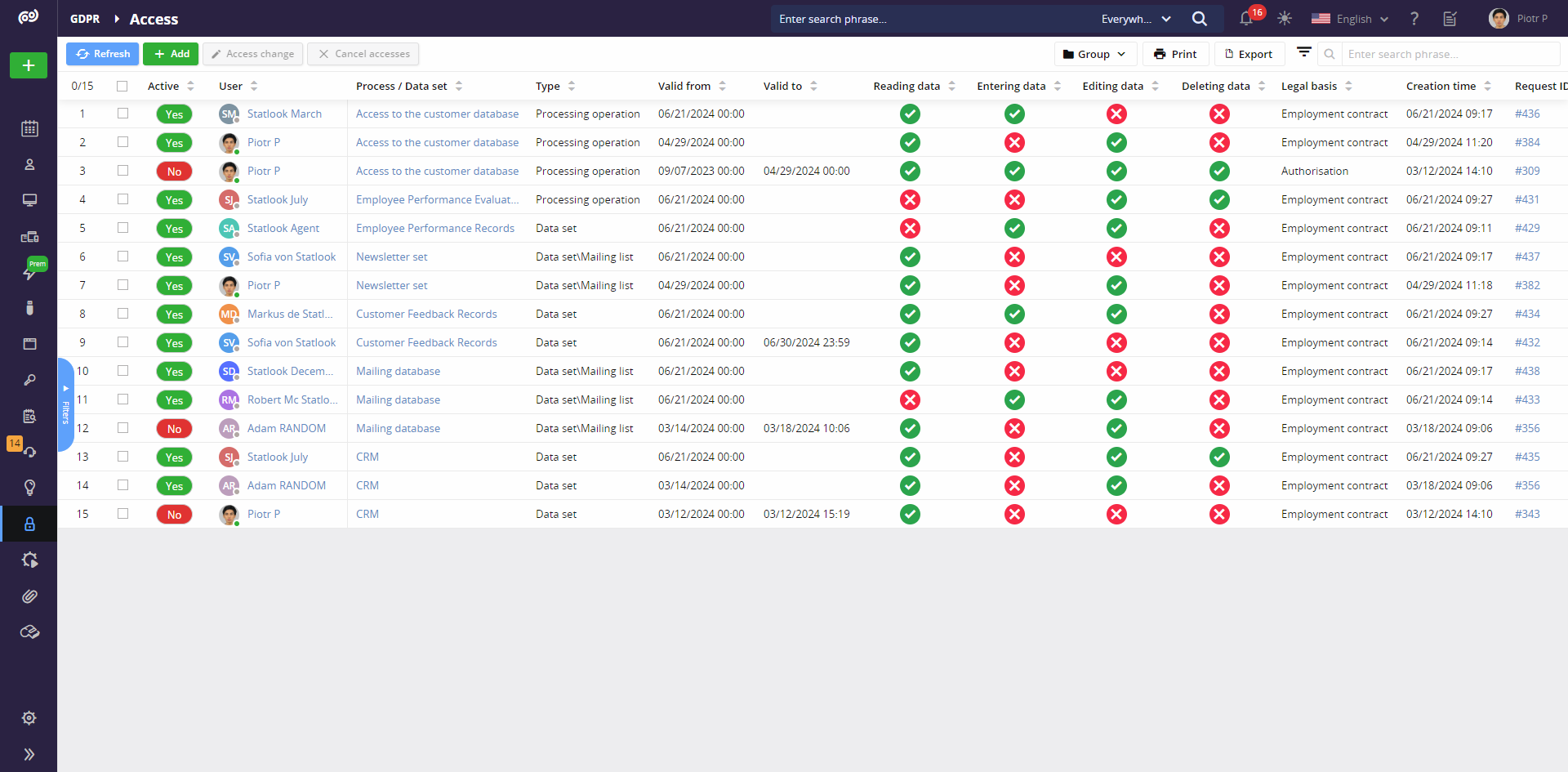 Statlook automates data access management processes, ensuring compliance with GDPR requirements by delegating tasks and documenting processes effectively.