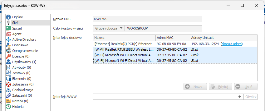 Rozszerzenie informacji o interfejsach sieciowych komputera