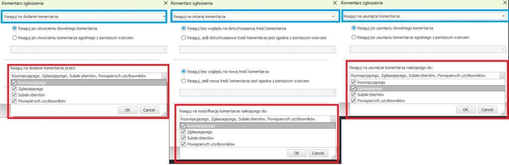 • Helpdesk, który słucha kontekstu: automatyzacja reakcji na komentarze wg autora (zgłaszający, rozwiązujący, subskrybenci, powiązani).
