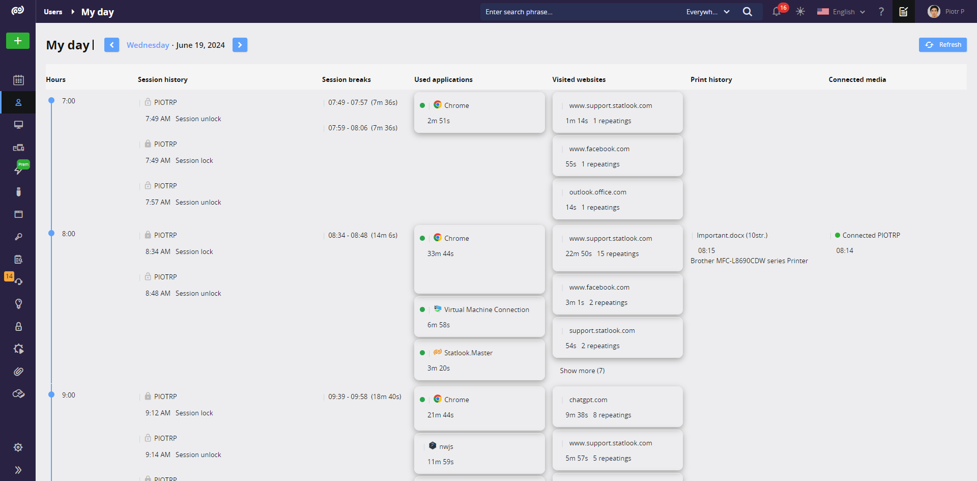 Comprehensive user activity monitoring for rational use of resources and increased security.